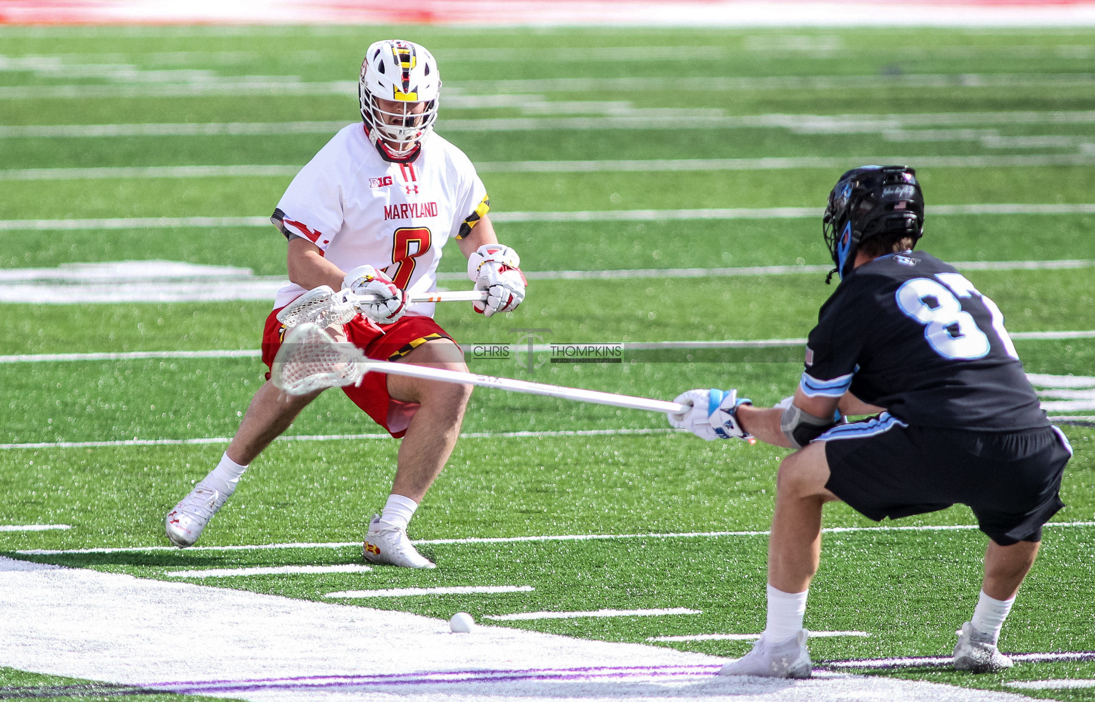 - March 6, 2021: during Big Ten mens lacrosse matchup between the John Hopkins Bluejays and the Maryland Terrapins at Capitol One in College Park, Maryland. Photographer: Chris Thompkins (Credit Image: Chris Thompkins/dcsportsfan