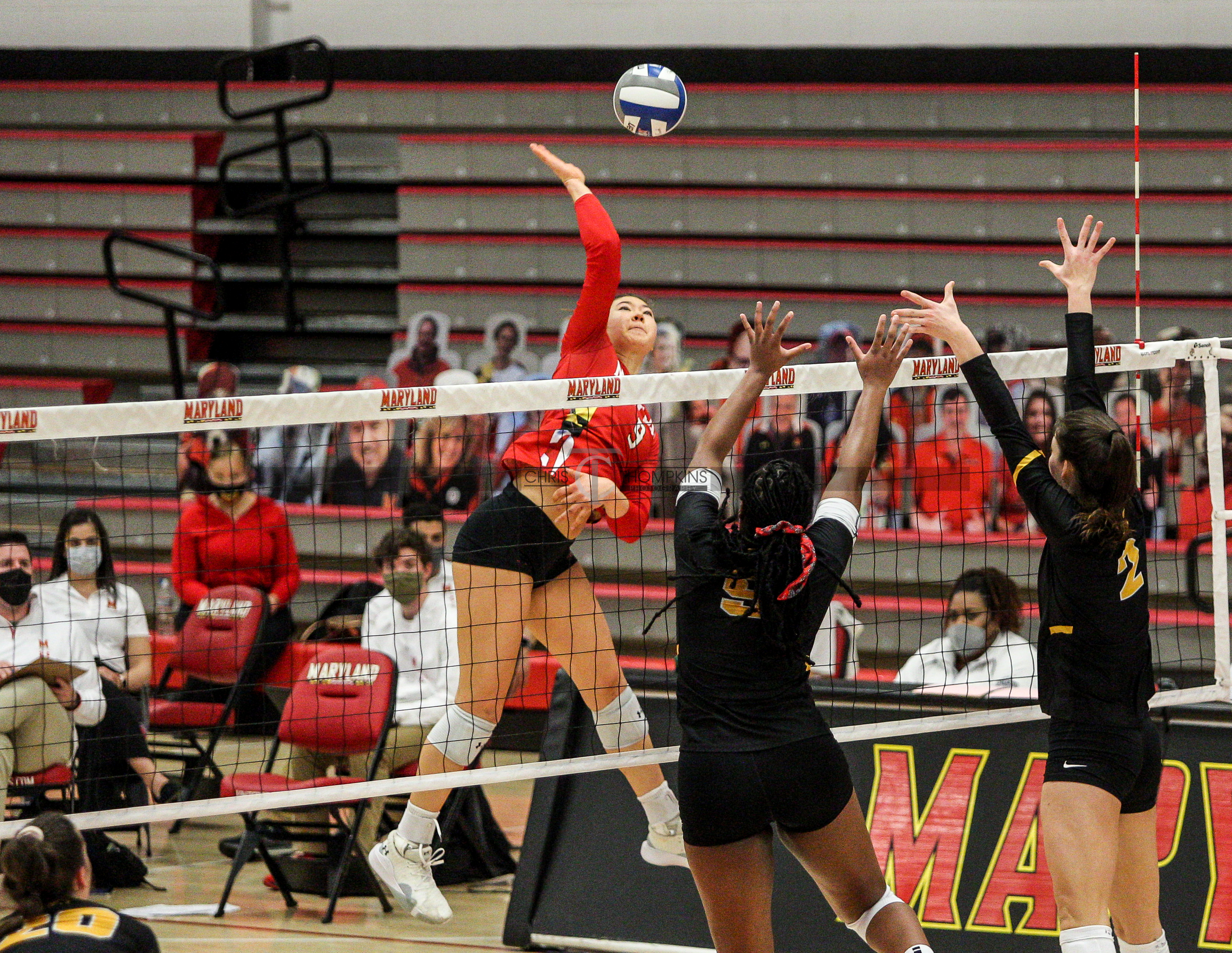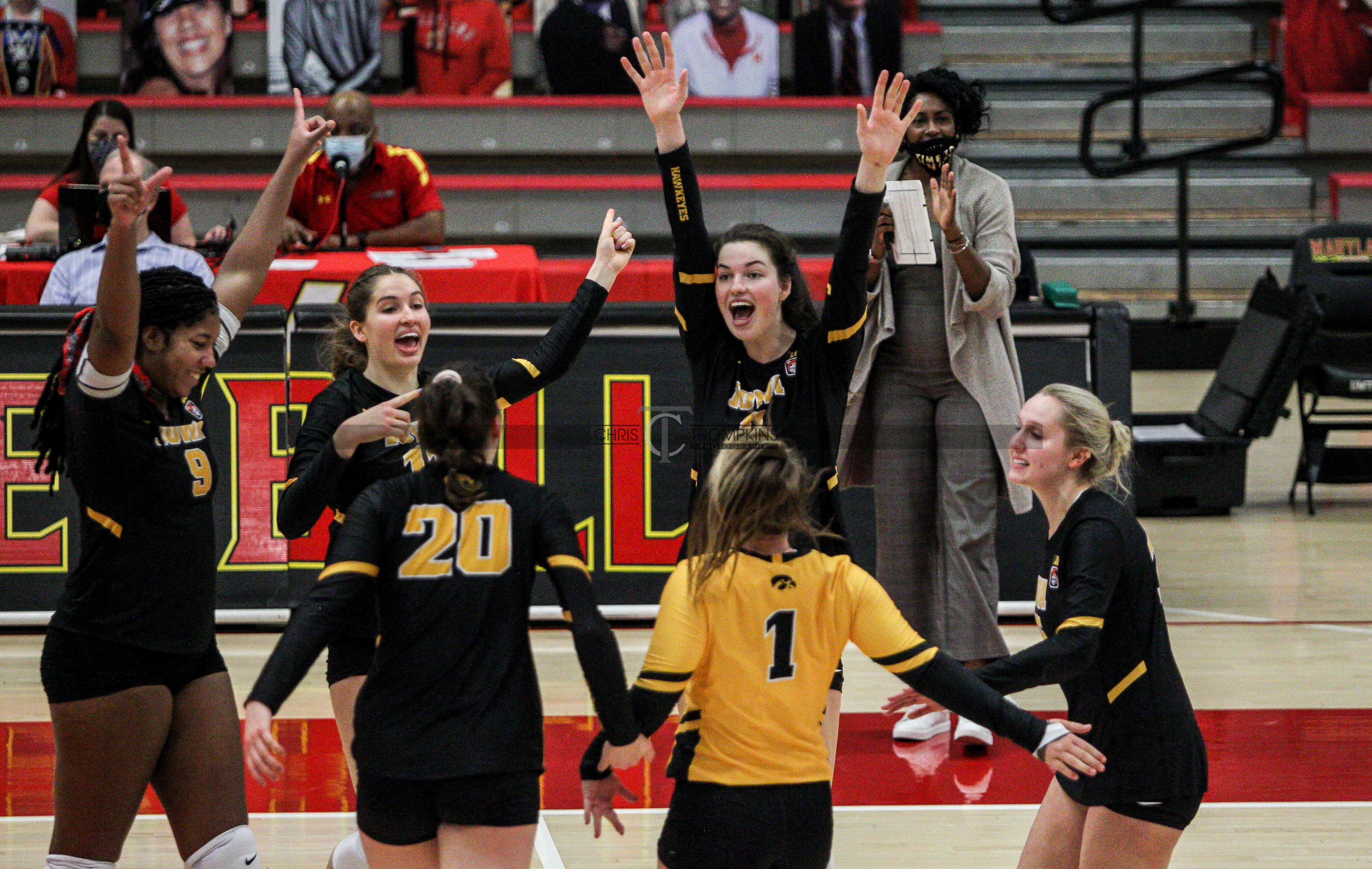 - March 12, 2021: during Big Ten volleyball matchup between the Iowa Hawkeyes and the Maryland Terrapins at Xfinity Pavilion in College Park, Maryland. Photographer: Chris Thompkins (Credit Image: Chris Thompkins/dcsportsfan