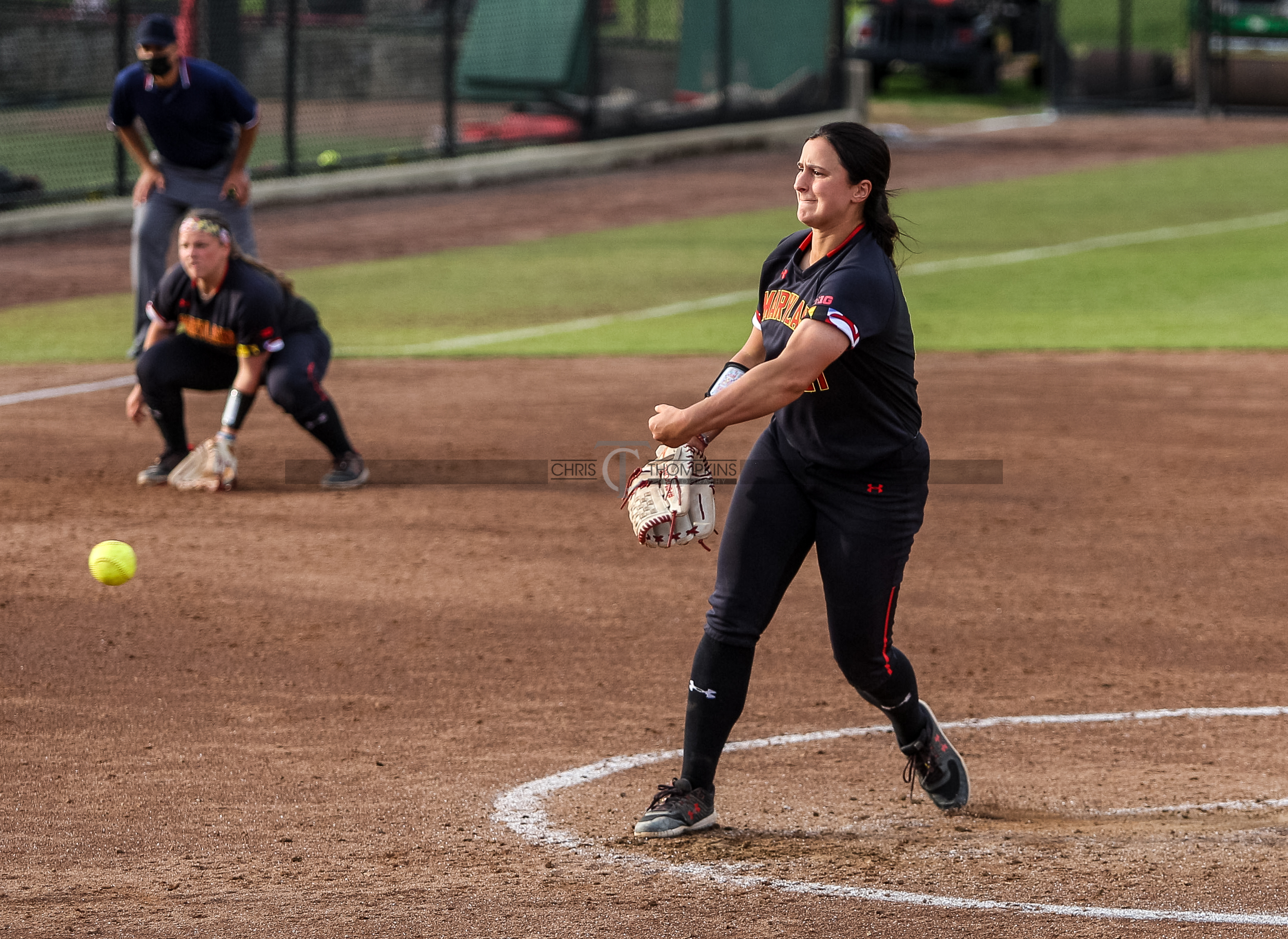 - April 10, 2021: Big Ten softball matchup between the Northwestern Wildcats and the Maryland Terrapins at Maryland softball stadium in College Park, Maryland. Photographer: Chris Thompkins (Credit Image: Chris Thompkins/dcsportsfan