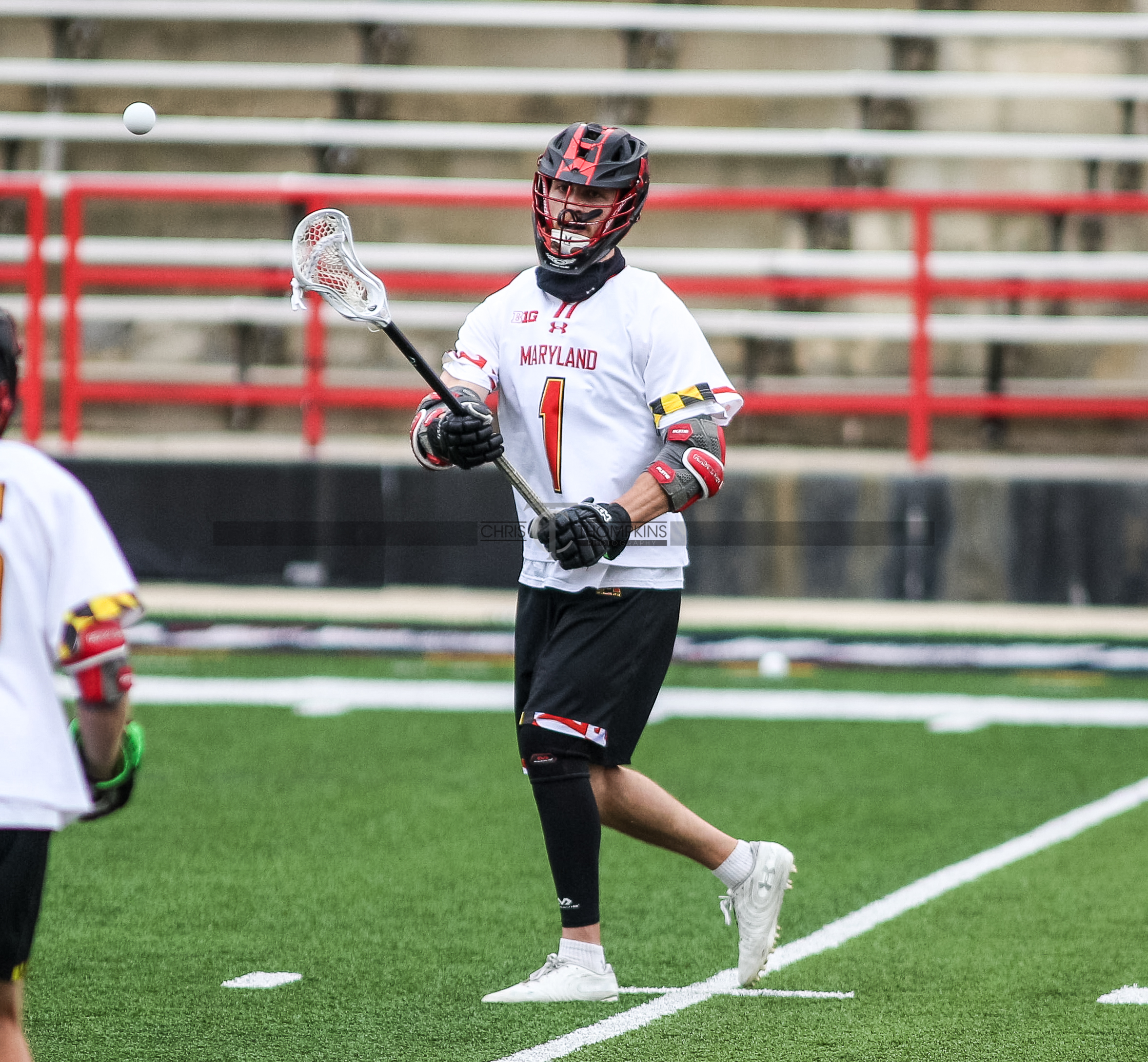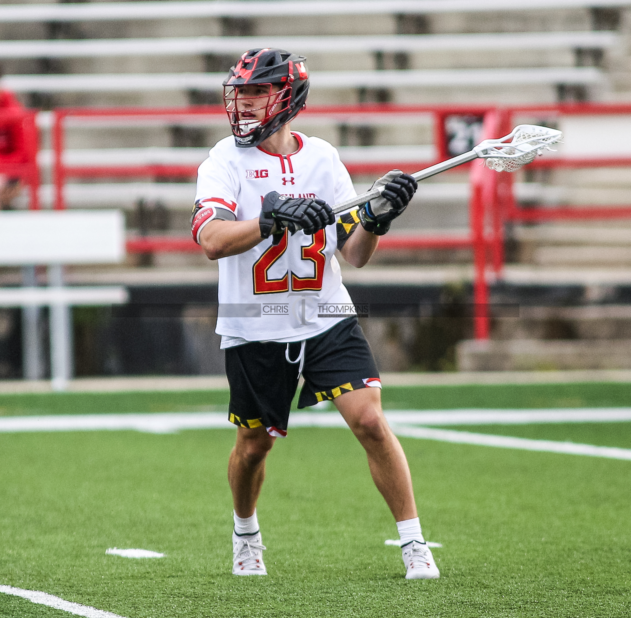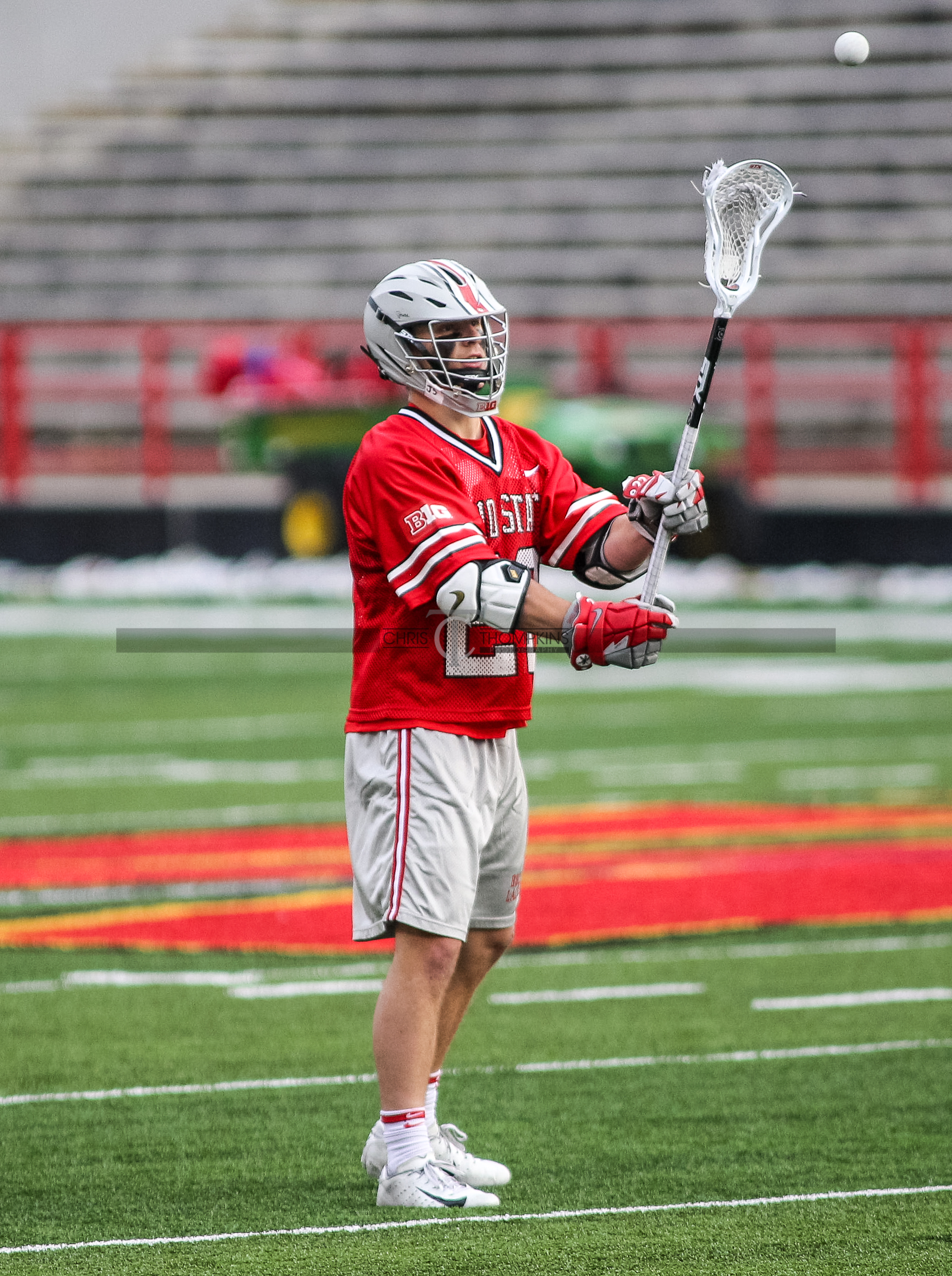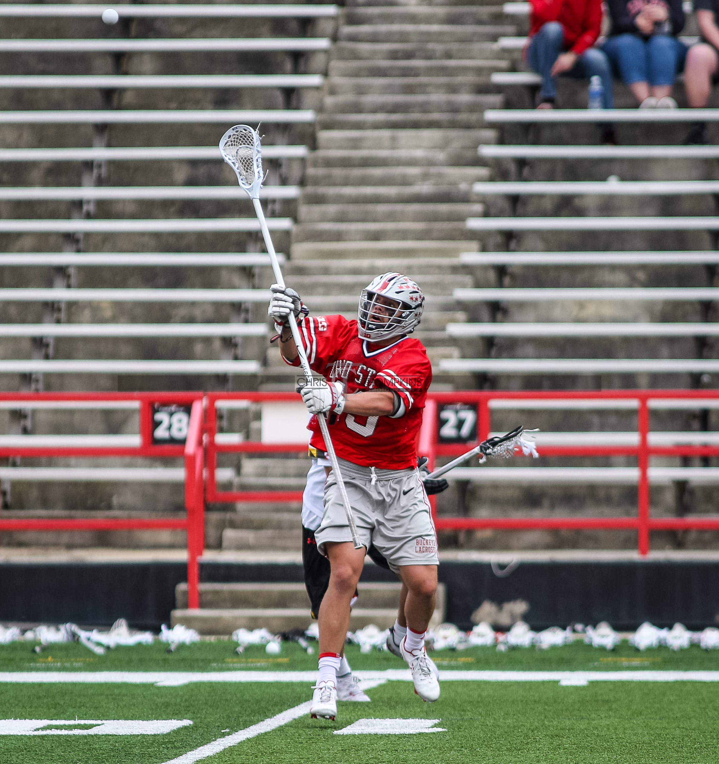 - April 18, 2021: Big Ten lacrosse action between Ohio State Buckeyes and Maryland Terrapins in College Park, Maryland. Photographer: Chris Thompkins (Credit Image: Chris Thompkins/dcsportsfan)