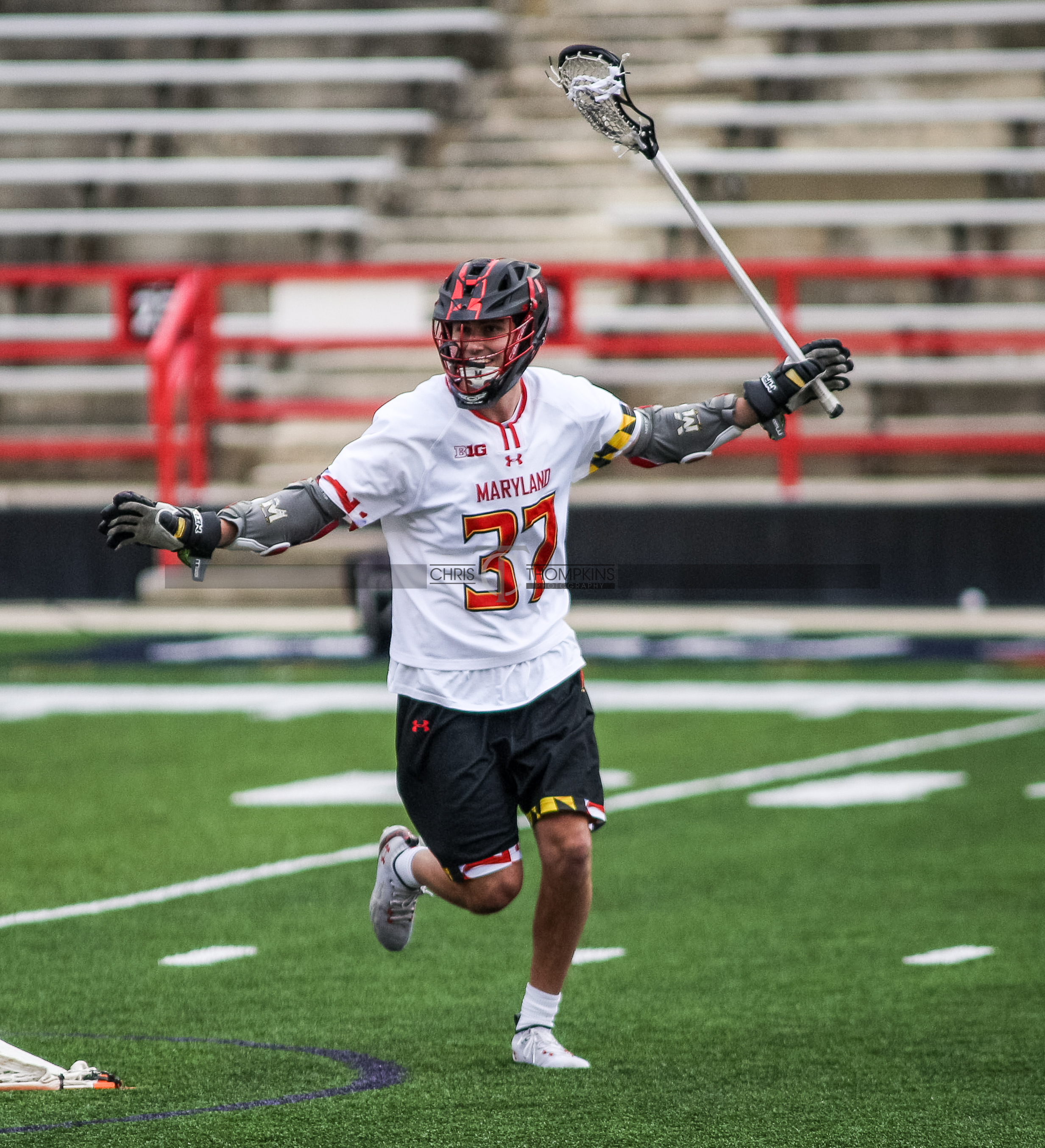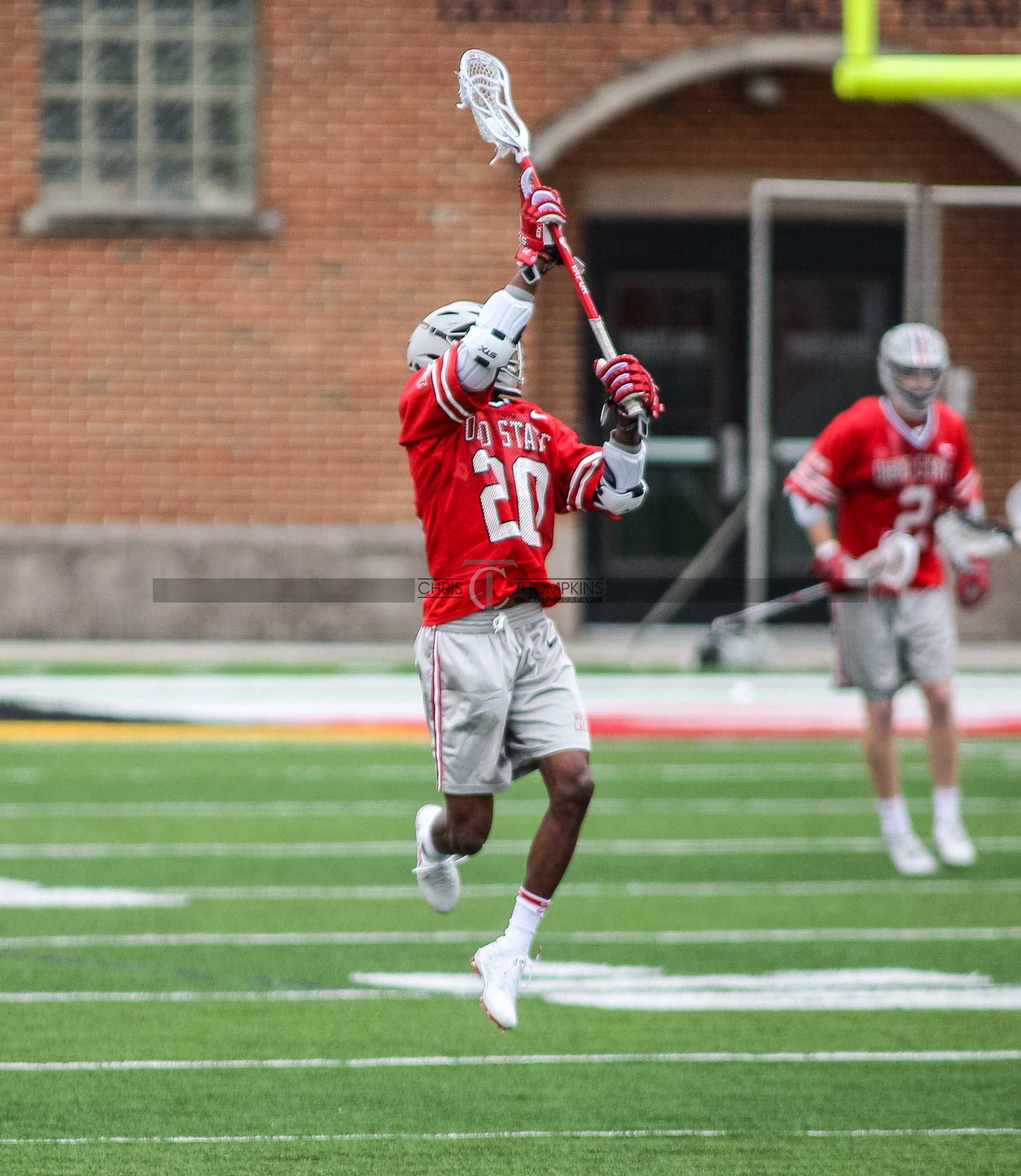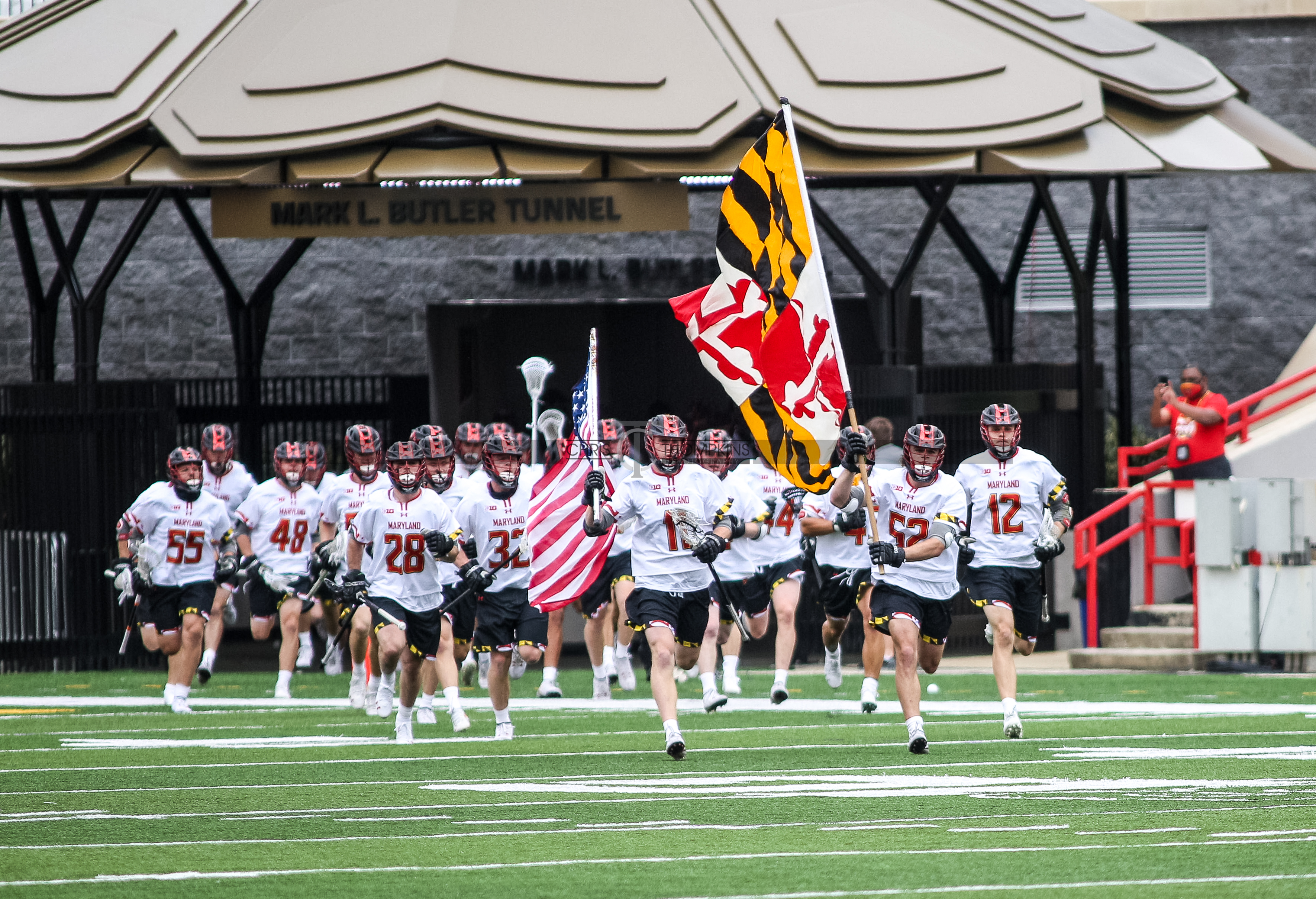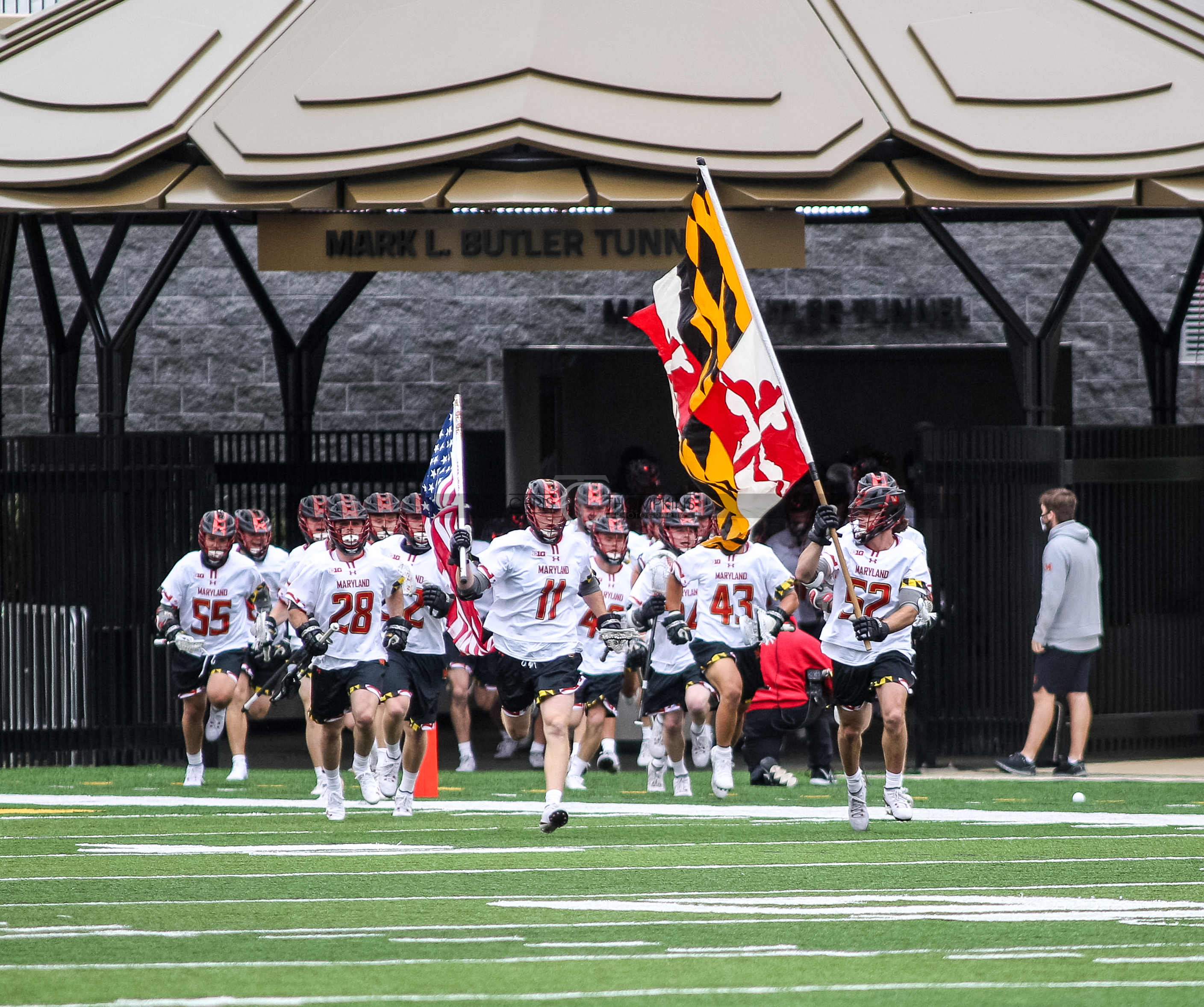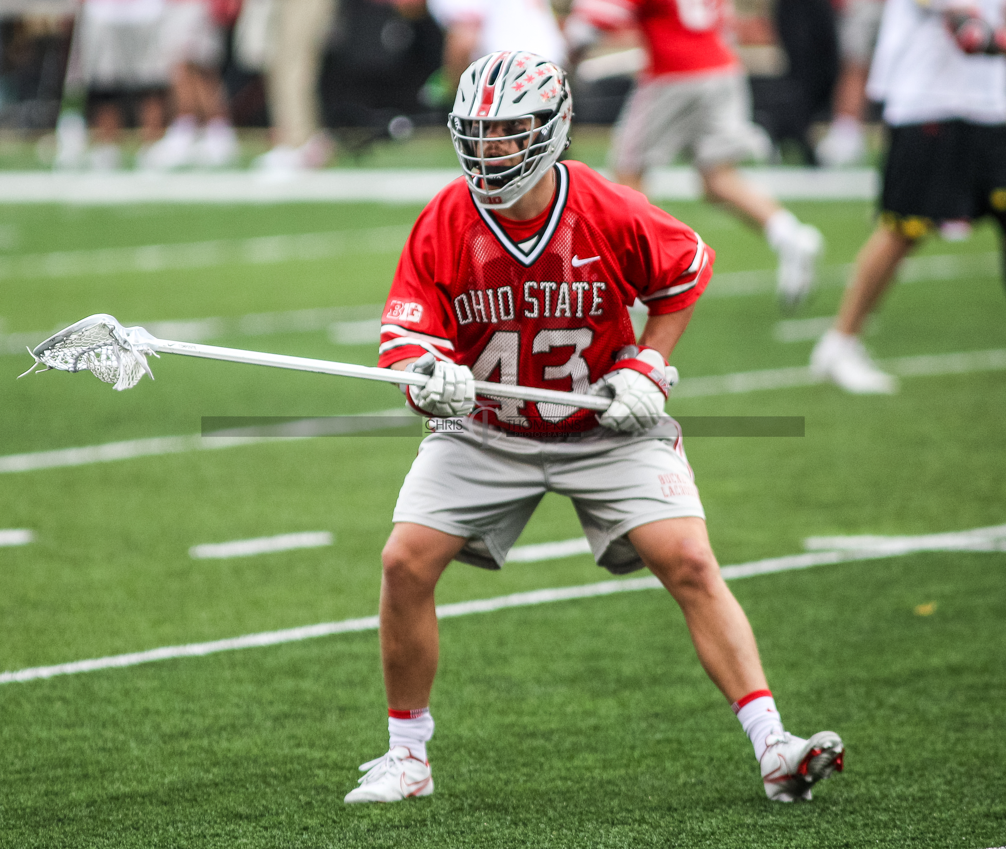 - April 18, 2021: Big Ten lacrosse action between Ohio State Buckeyes and Maryland Terrapins in College Park, Maryland. Photographer: Chris Thompkins (Credit Image: Chris Thompkins/dcsportsfan)